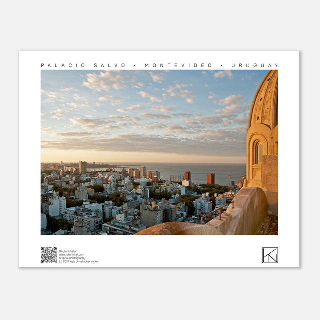 Sunset views from one of four towers of the iconic Palacio Salvo in Montevideo, Uruguay.